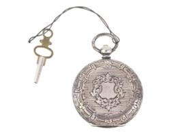 cassa in tre parti in argento, punzoni inglesi, quadrante bianco in porcellana con decorazione centrale floreale, indici numeri romani con stelline di colore oro, movimento a carica manuale, vetro plastica. Corredato di chiave di carica. Diam mm 40, gr 50 circa