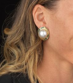 PAIO DI ORECCHINI CON GRANDI PERLE MABE SMERALDI E DIAMANTI