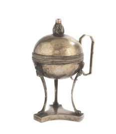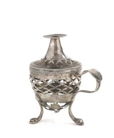 tre in argento, una con base circolare su cui poggia il corpo ovoidale traforato, l'altra con tre piedini terminanti a teste di pesce e corpo sferico traforato, l'ultima di forma cilindrica traforata, alt. cm 13 e cm 11,5 e cm 10, complessivi g 345; la quarta in metallo argentato con corpo semisferico poggiante su tre piedini terminanti a zampa ferina, alt. cm 14,5