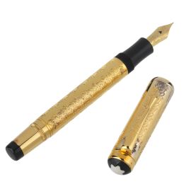 corpo in argento sterling 925 placcato in oro, corpo e cappuccio decorati con un motivo floreale ispirato ai famosi giardini di Versailles, pennino pennino in oro 18kt con foro intagliato a forma di cuore e fiocchi incisi, tipico accessorio di moda alla corte del Re Sole, punzoni Montblanc e 750, caricamento a stantuffo, lungh. cm 14. Corredata di scatola, controscatola, service card e garanzia.