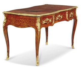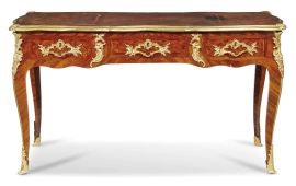 AN EARLY LOUIS XV ORMOLU-MOUNTED BOIS DE ROSE AND BOIS DE VIOLETTE BUREAU-PLAT BY JACQUES-PHILIPPE CAREL
