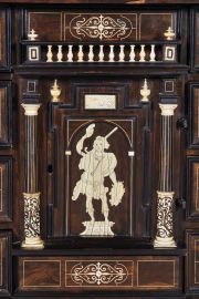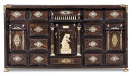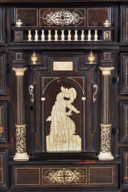 Questa coppia di stipi lastronati in ebano e decorati da intarsi in osso rientrano nella produzione artistica di arredi istoriati di area partenopea. L’affinità riscontrata con uno stipo napoletano che vede raffigurate alcune scene del Diluvio Universale, datato da Roberto Valeriani agli inizi del XVII secolo, ci spinge a contestualizzare quest’opera nel Regno delle due Sicilie, all’epoca del vicereame degli Asburgo di Spagna. Si tratta di oggetti che spesso venivano commissionati dai principi e re di tutta Europa, rintracciabili negli inventari delle loro raccolte, e che ritraevano scene dal mondo naturale così come soggetti storici e mitologici con intento didascalico. Queste produzioni artigianali erano il frutto di un lavoro congiunto fra lo “stipettaio” (ebanista) e l'incisore, artisti spesso giunti a Napoli anche da paesi nordici o delle Fiandre e che accanto alle maestranze locali erano attivi dalla seconda metà del Cinquecento a tutto il secolo successivo.