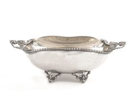in argento di forma ovale con due anse a volute traforate, cm 19x8, g 185