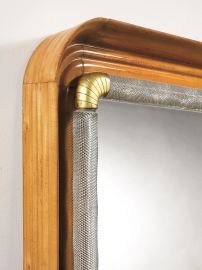 struttura in legno con dettagli in ottone e vetro