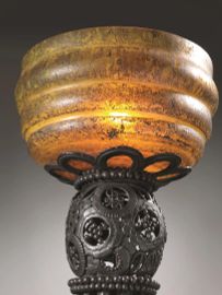 struttura in ferro battuto e paralume in vetro