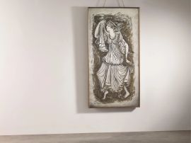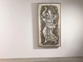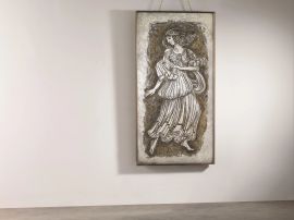 A TRIPTYCH OF MIRRORS, WOODEN STRUCTURE, BRASS FRAME, BACKPAINTED BY GIANNI RUSSIAN