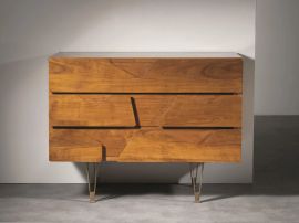 A PAIR OF DRAWERS, CARVED WOOD STRUCTURE, BRASS LEGS