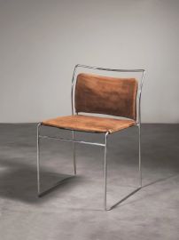 struttura in metallo cromato, seduta e schienale in pelle scamosciata marrone