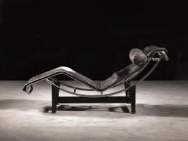 A «LC4» CHAISE LONGUE, METAL AND STEEL STRUCTURE
