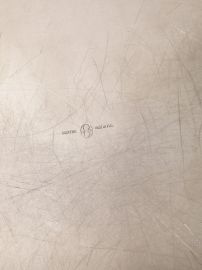 Marchio del produttore, firma e modello in basso a destra e sul fondo