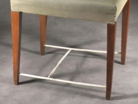 SIX CHAIRS, WOOD AND WHITE LACQUERED IRON STRUCTURE, GREY FABRIC UPHOLSTERY