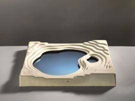 A «LAGO BLU» MIRROR, PLASTIC MATERIAL, COLORED MIRRORED CRYSTAL