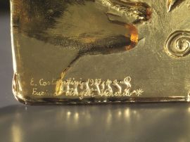 in vetro nei toni dell’ambra raffigurante volto e pianta