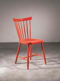 SIX CHAIRS, RED LACQUERED WOOD STRUCTURE