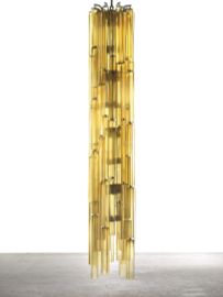 Anche la qualità e la fattura degli elementi in vetro risulta identica ad altri esempi del maestro, così come il sistema di fissaggio metallico dei singoli componenti tubolari.
