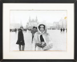 Marina with Viola the dog, in front of the Winter Palace in Leningrad, Saint Petersburg