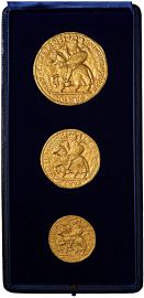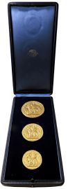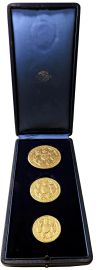 CASSA DI RISPARMI E DEPOSITI DI PRATO. TRITTICO DI MEDAGLIE IN ELEGANTE COFANETTO OPUS BINI-JOHNSON