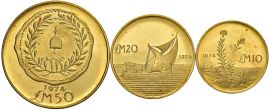 MALTA. TRE MONETE 1974 (50, 20, 10 LIRE)