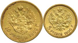 RUSSIA. DUE MONETE DA 10 E 5 RUBLI 1900