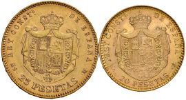 SPAGNA. DUE MONETE DA 25 PESETAS 1880 E 20 PESETAS 1887