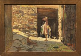 on the reverse: label with inscribed "N. 46 - Ruggero Focardi / "Un vicolo di Tosi piccolo / paese presso Vallombrosa"