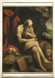A ben guardare la tela qui offerta rivela una notevole attenzione ai valori epidermici con passaggi più morbidi rispetto a quella di Voltaggio: ancora più convincenti si rivelano inoltre le pennellate che costruiscono la veste e il cappello del santo, quella dei libri in primo piano e in generale la trattazione del terreno e delle componenti paesistiche, assai prossime alle opere cambiasesche degli anni Sessanta come la Maddalena di collezione privata esposta alla grande mostra del 2007 (L. Magnani in Luca Cambiaso. Un maestro del Cinquecento europeo, cat. della mostra, Genova 2007, pp. 286-287, cat. 41), tanto da far ritenere il nostro San Gerolamo ottimo prodotto della prolifica bottega di Luca Cambiaso con interventi di mano quest’ultimo.