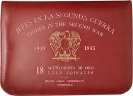 DICIOTTO MEDAGLIE IN ORO DEI CAPI DELLA SECONDA GUERRA MONDIALE. SERIE EMESSA DAL BANCO ITALO-VENEZUELANO IN ELEGANTE ASTUCCIO DI PELLE