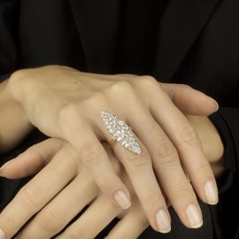 in oro giallo e bianco 18kt, impreziosito da diamanti taglio antico (uno danneggiato) per ct 3.60 circa, mis. 53, gr. 8
