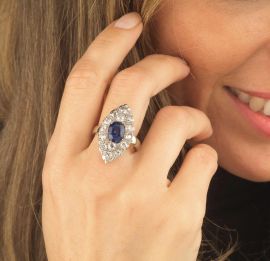ANELLO A LOSANGA CON ZAFFIRO E DIAMANTI