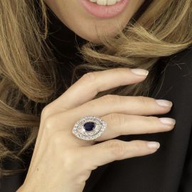 ANELLO A LOSANGA CON ZAFFIRO E DIAMANTI