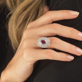 ANELLO A MARGHERITA CON RUBINO E DIAMANTI