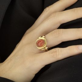 ENGRAVED CARNELIAN RING IN GOLDEN METAL
