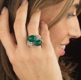 ANELLO CONTRARIE CON SMERALDI E DIAMANTI