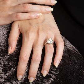 in oro bianco 18kt, con diamante taglio veccchio (smontato) di ct 5.98, colore N, purezza SI1, mis. 49, gr. 2. Corredato di certificato IGN del 30/09/2021 attestante le caratteristiche.