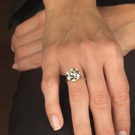 in oro bianco 18kt, con diamante taglio brillante (smontato) di ct 6.08, colore P/Q, purezza Vs1, mis. 54, gr. 4. Corredato di certificato IGN del 18/10/2021 attestante le caratteristiche.