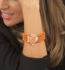 BRACCIALE A FASCIA CON CORALLO E DIAMANTI