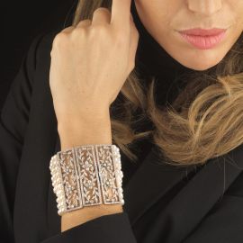 BRACCIALE AD AMPIA FASCIA CON PERLE E DIAMANTI