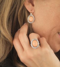 DEMI PARURE CON CORALLO ROSA E DIAMANTI
