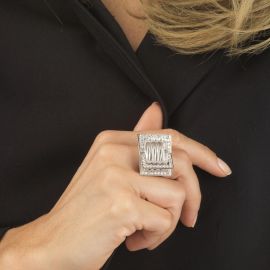 in oro bianco 18kt, impreziosito da diamanti taglio brillante per ct 2 circa, punzoni 750, 18kt e del fabbricante, mis. 60, gr. 32