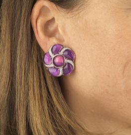 MICHELE DELLA VALLE PAIO DI ORECCHINI A FIORE CON AMETISTE E DIAMANTI