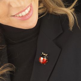 LADYBUG-SHAPED BROOCH IN 18KT YELLOW GOLD AND ENAMELS