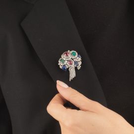 MULTI GEM AND DIAMOND BROOCH IN 18KT WHITE GOLD
