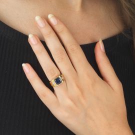 BAND SAPPHIRE AND DIAMOND RING IN 18KT YELLOW GOLD