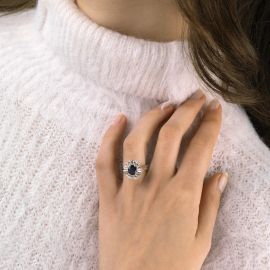 ANELLO A FIORE CON ZAFFIRO E DIAMANTI