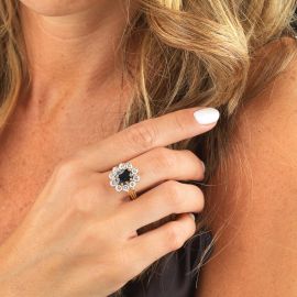 ANELLO A MARGHERITA CON ZAFFIRO E DIAMANTI