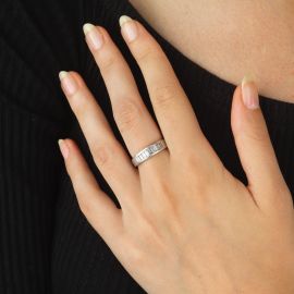 in oro bianco 18kt, ad una fila di diamanti taglio baguette per ct 0.70 circa, mis. 54, gr. 7