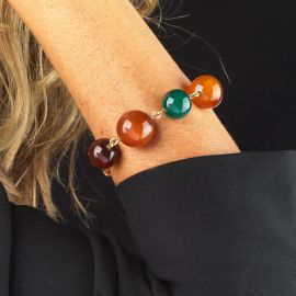 BRACCIALE CON SFERE IN CALCEDONIO E QUARZI