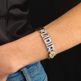 in oro giallo e bianco 18kt, recante il nome "Lidia" impreziosito da diamanti taglio brillante per ct 1 circa, punzone 750, diam. cm 6, gr. 37