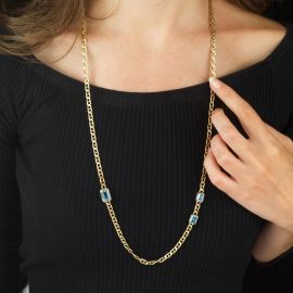 CHAIN BLUE STONE NECKLACE IN 18KT YELLOW GOLD