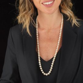 LONG PEARL NECKLACE WITH DIAMONDS AND A SAPPHIRE